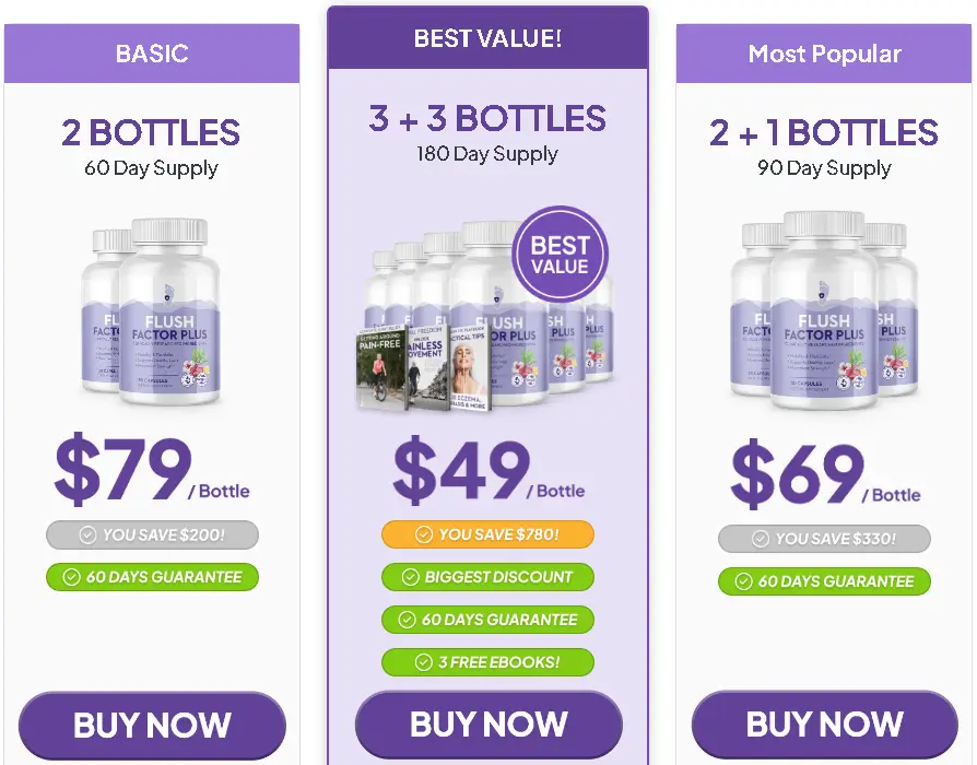 Flush Factor Plus is sold exclusively through its Official Website, ensuring you receive the authentic formula, access to the free bonuses, and full coverage under the manufacturer’s refund policy.