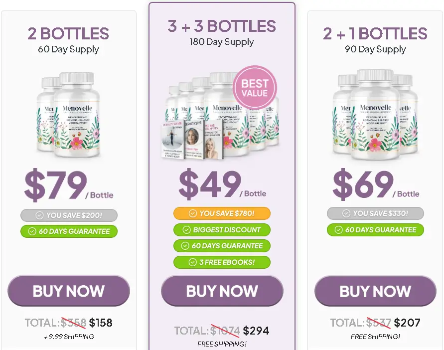 Menovelle is available only through its Official Website, ensuring that every bottle comes directly from the manufacturer — with verified authenticity, quality assurance, and eligibility for the full refund policy. Buying from the official source also guarantees access to the latest discounts and bundle promotions.